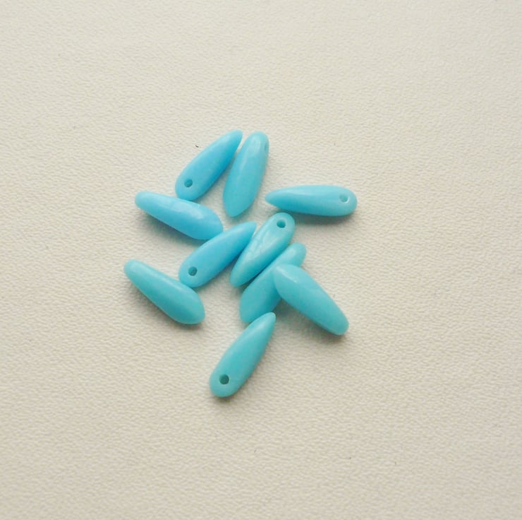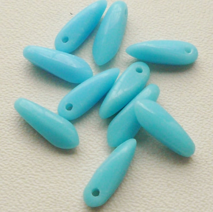 This listing is for ten light sky blue Preciosa Czech glass dagger shaped beads.