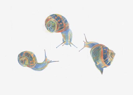 This pair of professionally printed postcards features one of each of the above designs. Both designs were hand drawn by myself, the snails using coloured pencils and the parrots using a black ink pen.