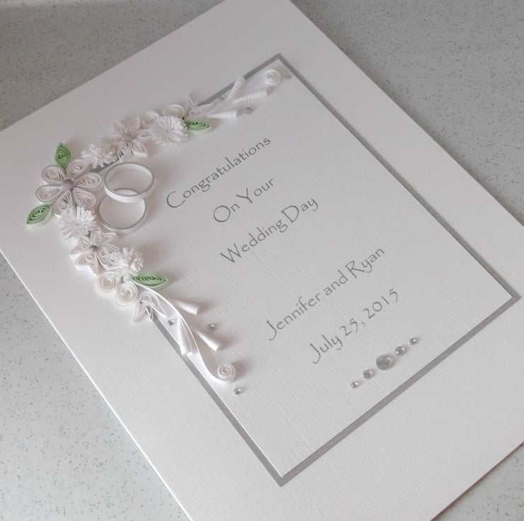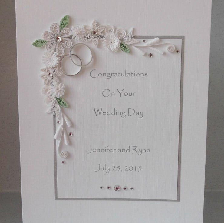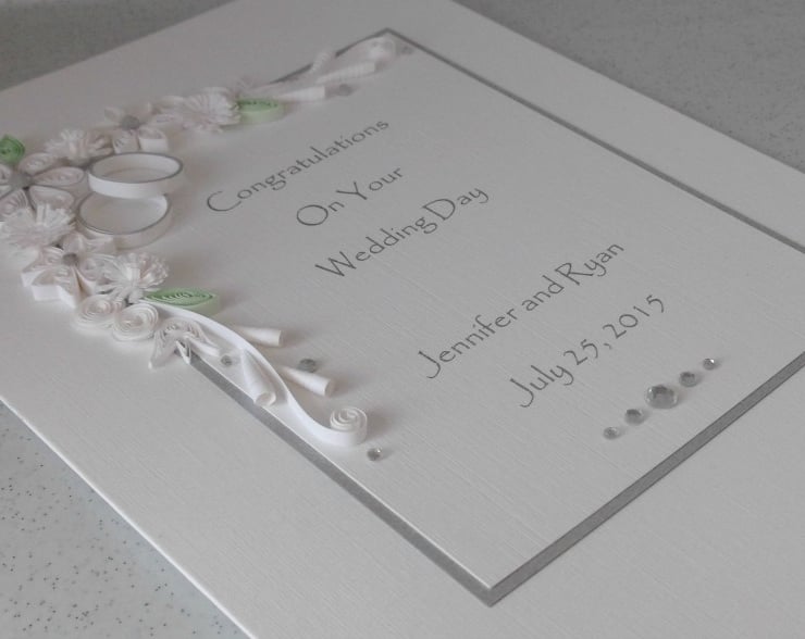 Quilled wedding congratulations, personalised with name and date
