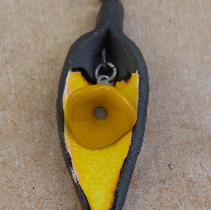 The ceramic flower pendant is handmade by UK Artist Claire Lockwood.