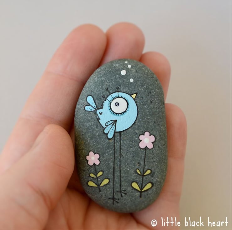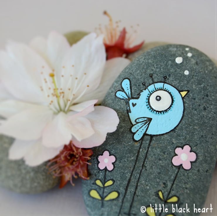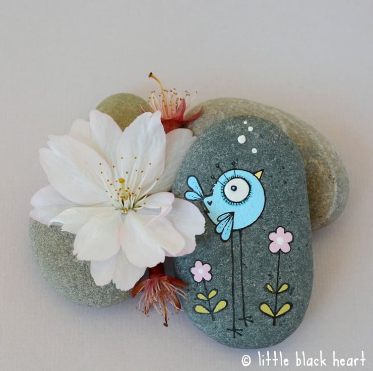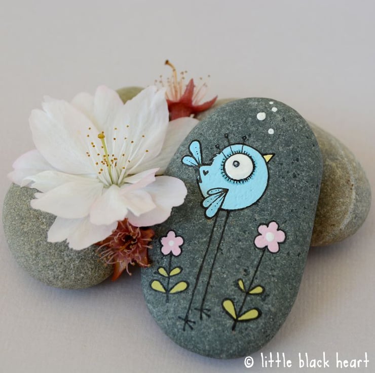 an original little collectable artwork - it is not varnished, as i did not want to change the original colour and feel of the pebble, so please take care not to handle too much.