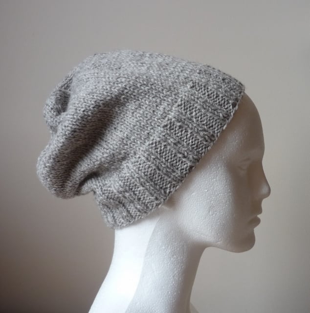 I hand knit this simple and classic beanie for men for everyday wear and outdoor activities. It can be worn with rolled edges or as a slouchy hat.