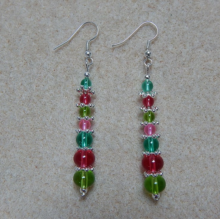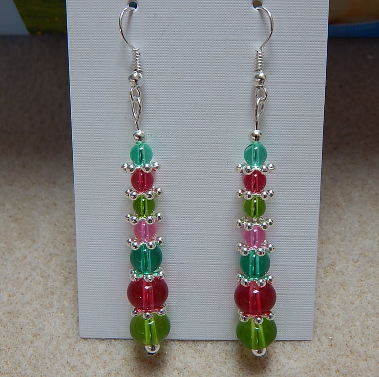 Made with silver plated parts and glass beads.