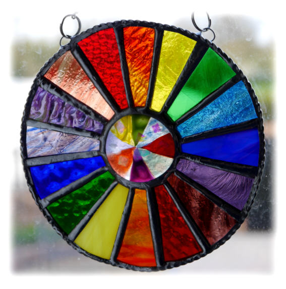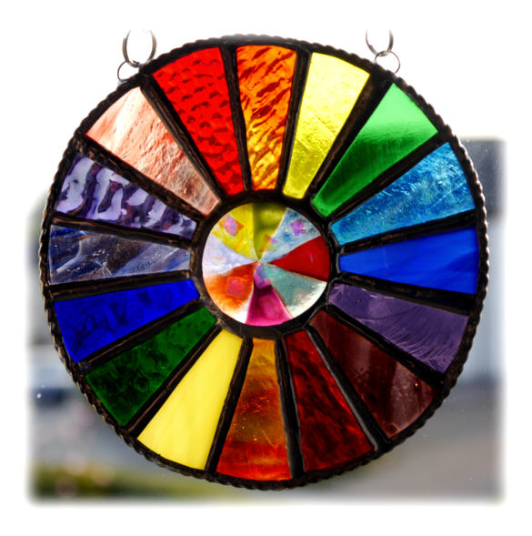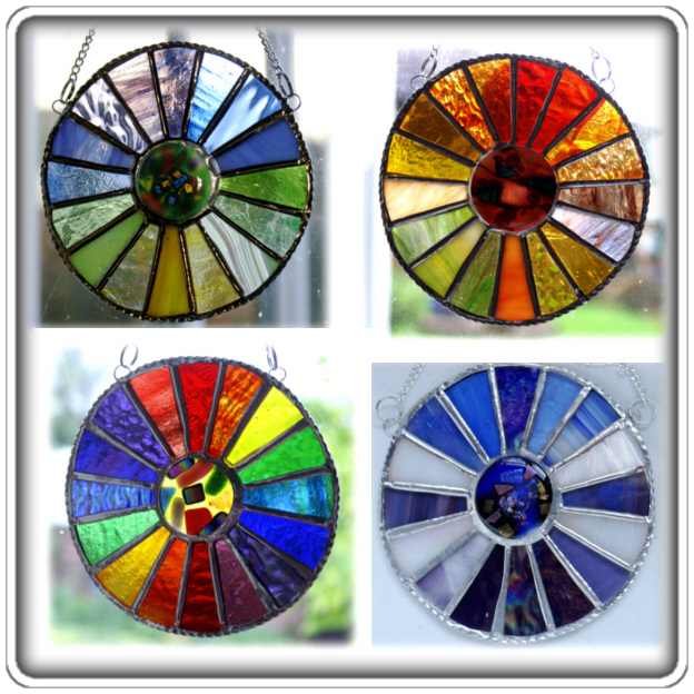 Photos 1-4 are of this suncatcher and the 5th shows a previous one to the same colour scheme and more to the same Colour Wheel design but other colours.