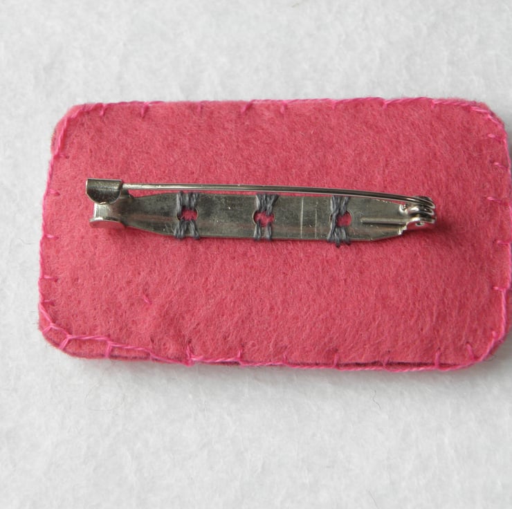 Measuring 5.5cm x 3 cm it is made from pink felt with a secure pin on the back.