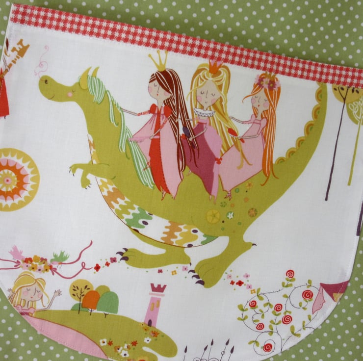 This stunning fairy fabric teams so well with the dotty green print for the reverse side. And I just adore the dragon that the princesses are riding.