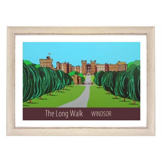 A contemporary travel poster style print of the Long Walk from Snow Hill to the historic, royal Windsor Castle, from my own original acrylic painting.