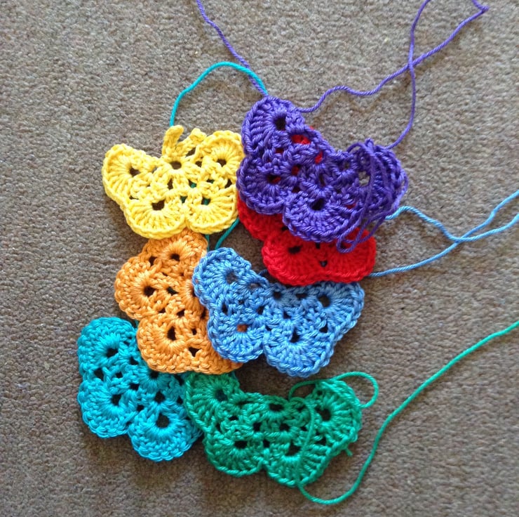 Pretty garland of 7 butterflies each one in a different colour from the Rainbow