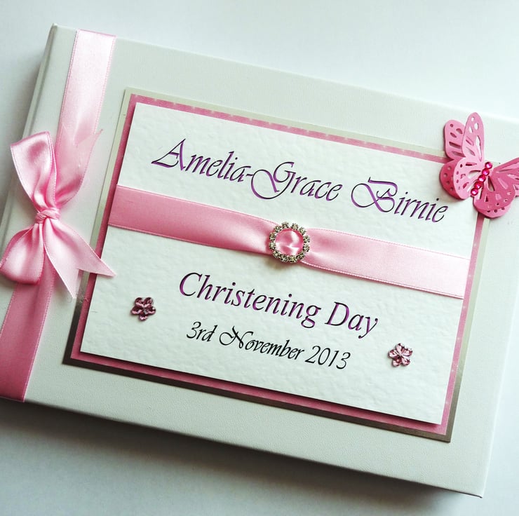 Pink christening guest book, girl christening book, keepsake, gift