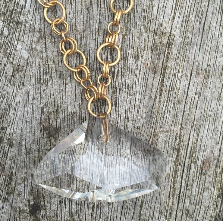 Swarovski cut crystal glass pendant on gold plated chainmaille necklace.