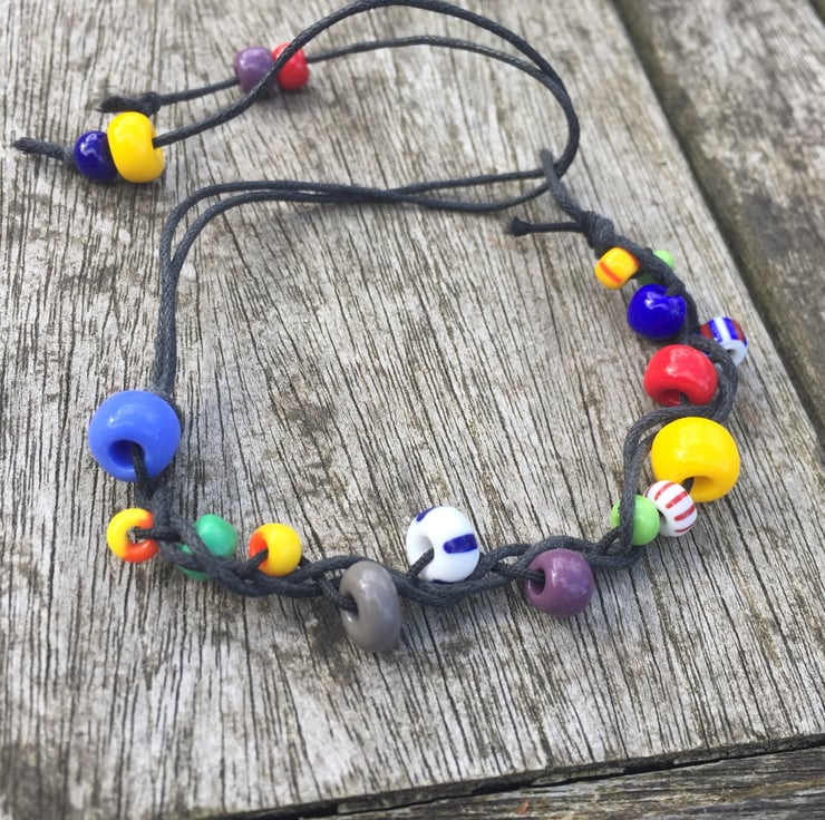 Adjustable tie up bracelet so one size fits all