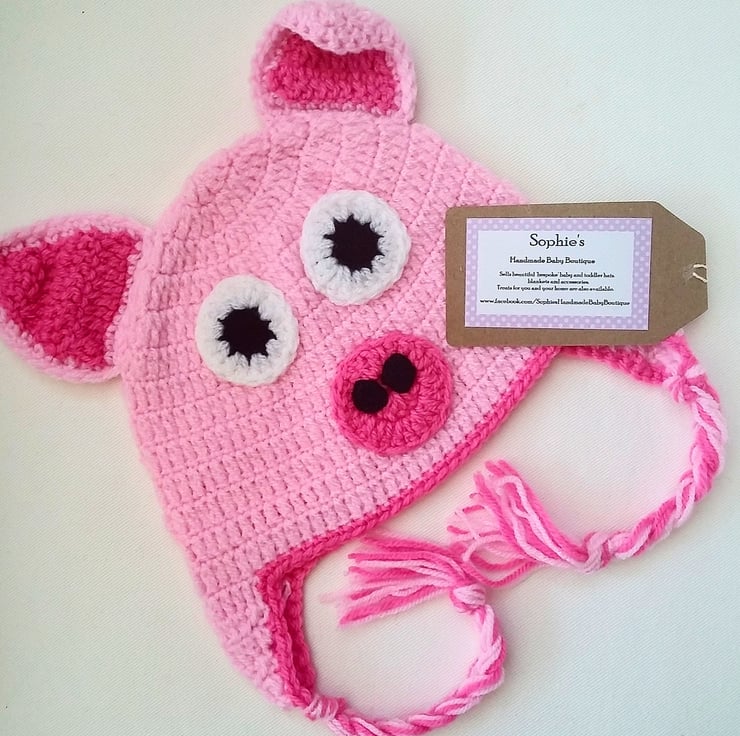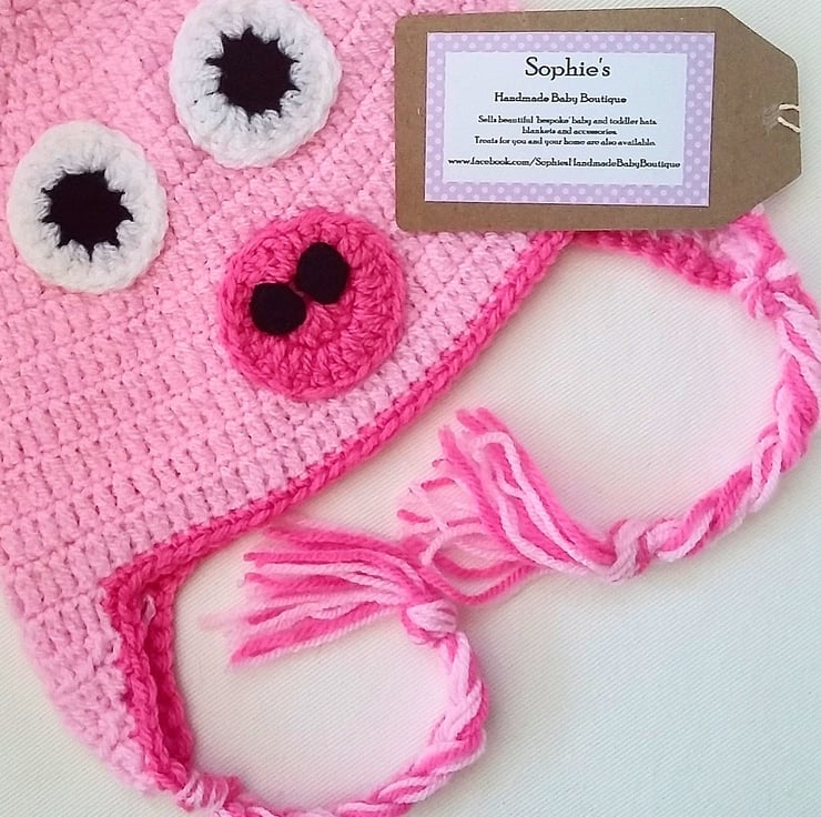 A cute and unique 2-4 years (approx) pig hat, made to keep your little one nice and warm whilst looking adorable at the same time!