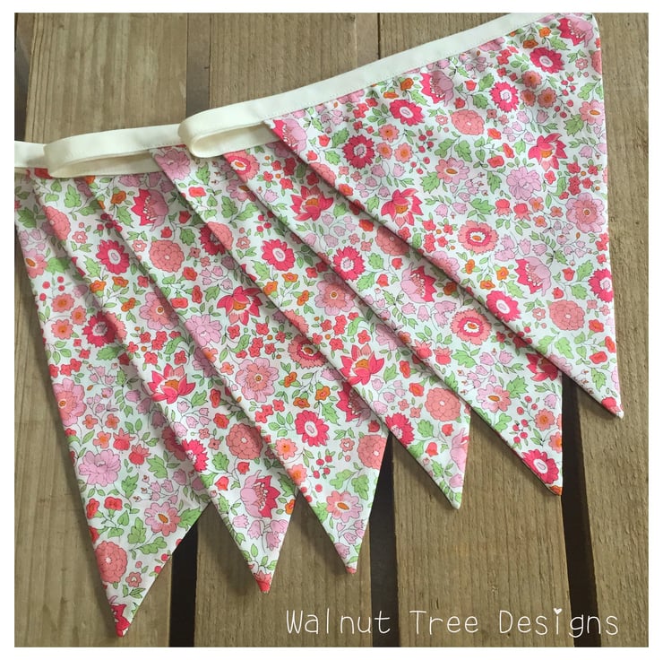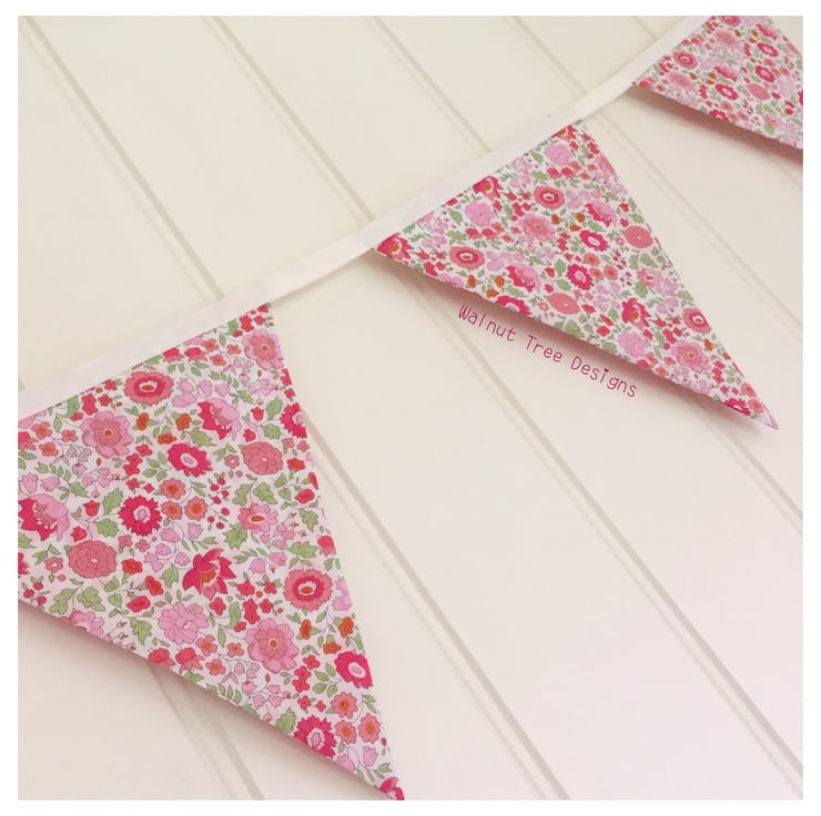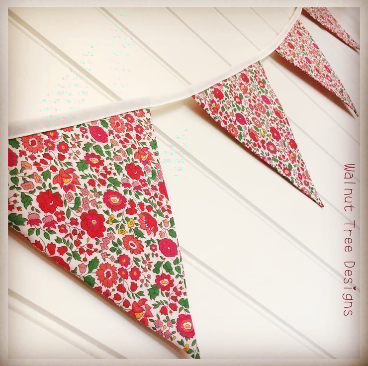 Liberty Print fabric, used to make 6 flag bunting, measuring 2 metres long.