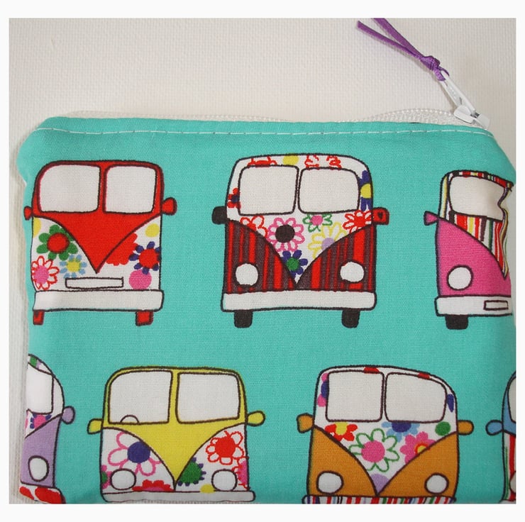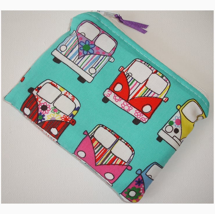 This little zipped coin purse features Campervans in a multitude of colours - stripes and Flower Power designs.