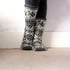Black fingerless gloves featuring a reindeer or a buck in brown grey.