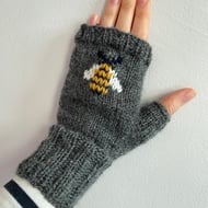 Hand knitted with 100% wool black yarn and alpaca and wool mix brown yarn.