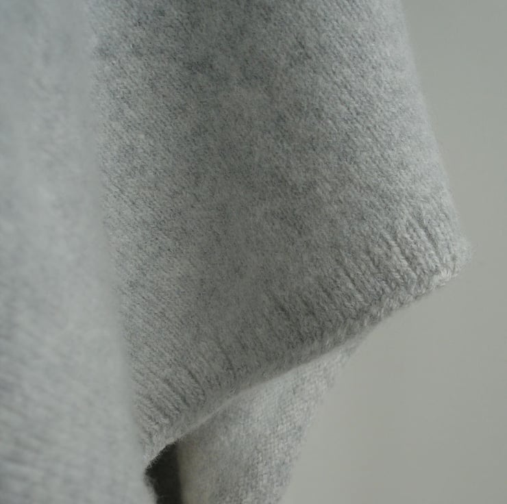 The Poncho is handcrafted on a vintage knitting machine in our studio in Greenwich, London and hand finished. It is then gently washed and lightly felted to achieve poncho which hangs and folds luxuriously.