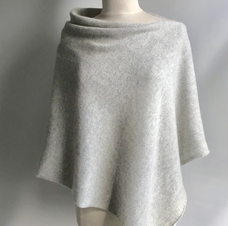 Poncho Knitted in Pure Merino Lambswool in British Spun Wool Colour Palest Grey