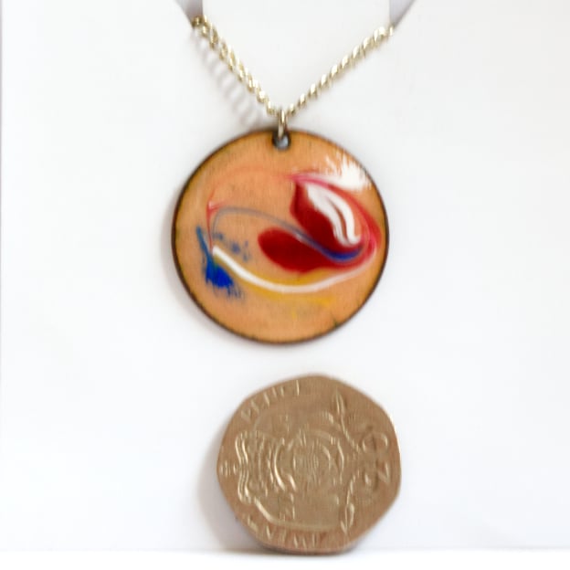 The pendant measures 25mm in diameter. It is mounted on a silver plated curb chain, 18 inches (45cm) long.