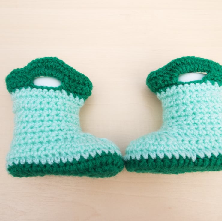 Hand crochet baby booties galoshes rain boot greens 0 - 3 months