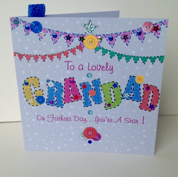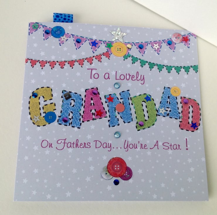 The Applique work is the main design as it spells out 'Grandad', with smaller text for the remainder of the greeting.
