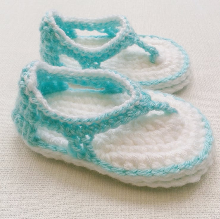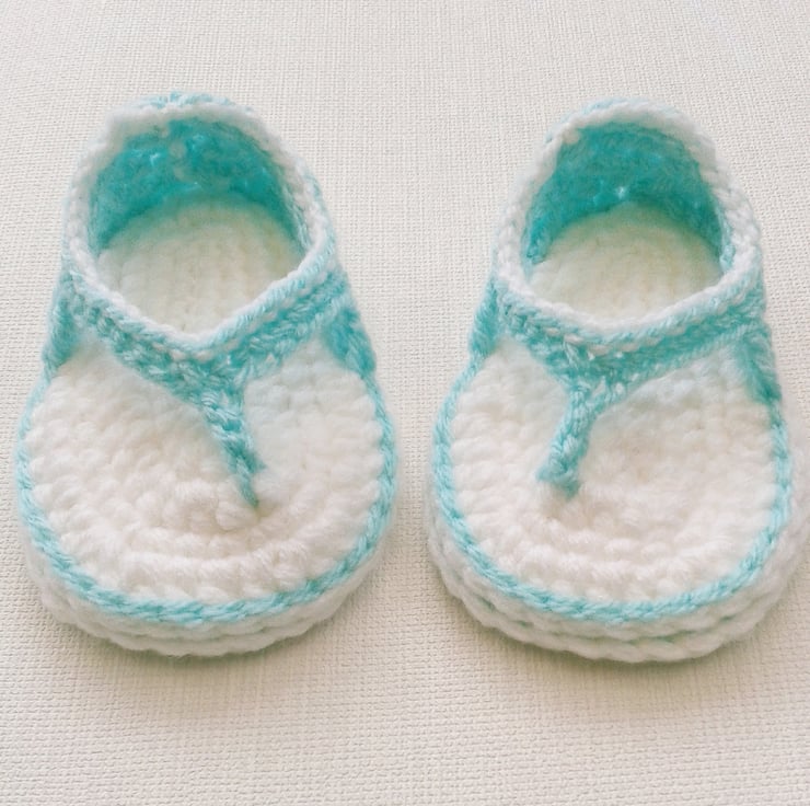 A very cute pastel green and white pair of 'slip on' sandals-like flip flops, only much more secure for your little ones feet!