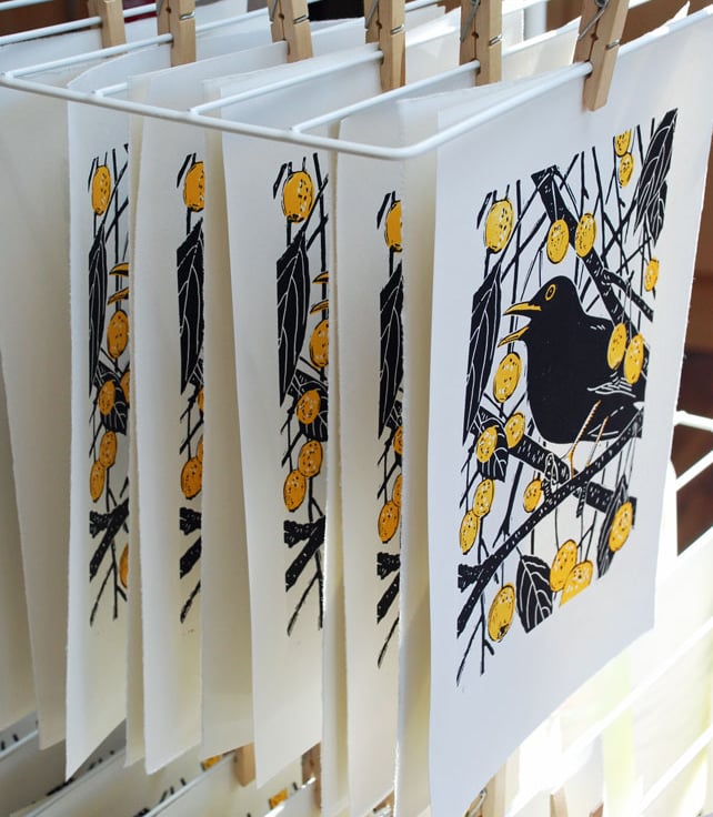 Limited Edition of 100, (plus 5 Artists Proofs), once these are all sold that's the edition finished and the lino plates will be destroyed, so then that's it and you've bought something very special!
