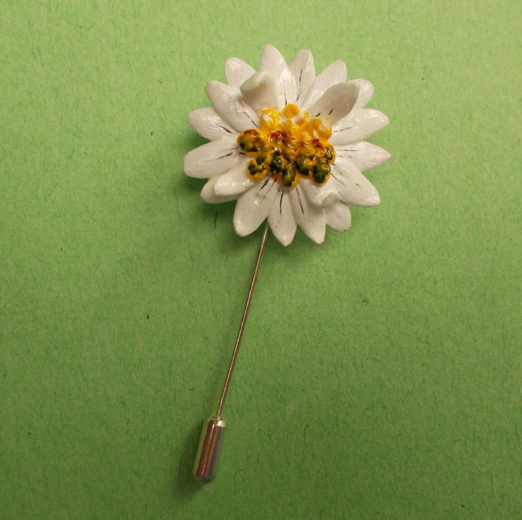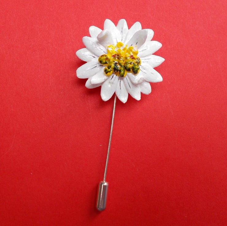 THE Single MARGUERITE DAISY STICK PIN, Lapel Flower Pin.