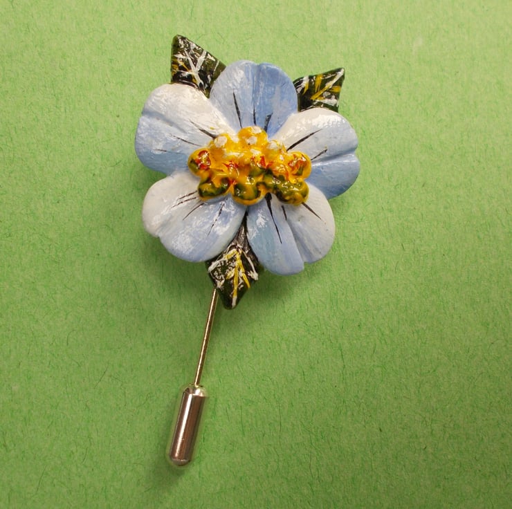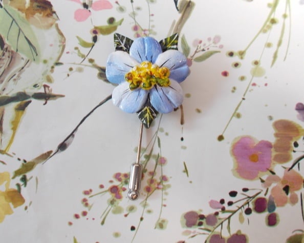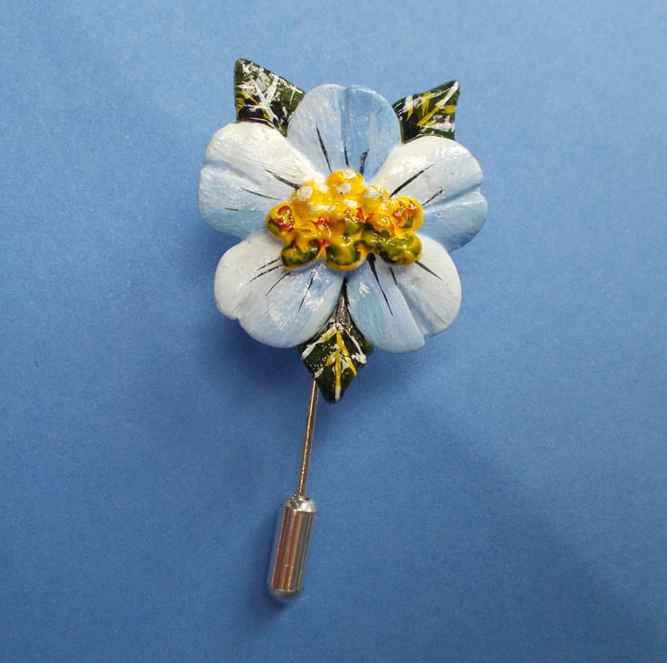 THE PASTEL BLUE BLOSSOM- FLOWER STICK PIN- Lapel Flower Pin