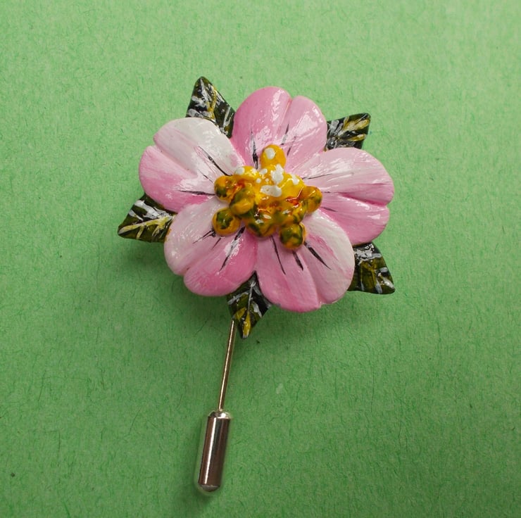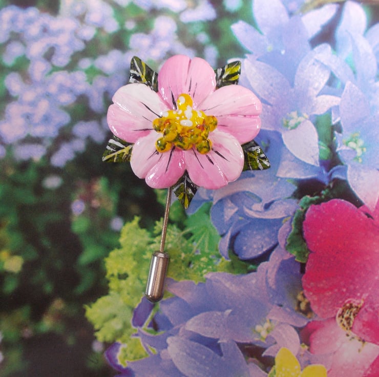 You are looking at one of my more unusual Designs- THE PINK BLOSSOM FLOWER STICK PIN- Lapel Flower Pin.