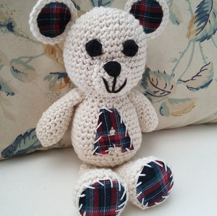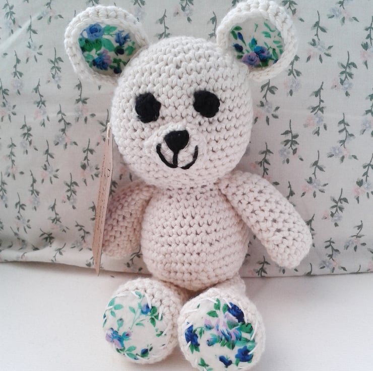 If you would like another colour wool or fabric then pop along a message as this can be arranged! There is an example of a blue floral and a tartan bear below, which have also been ordered.