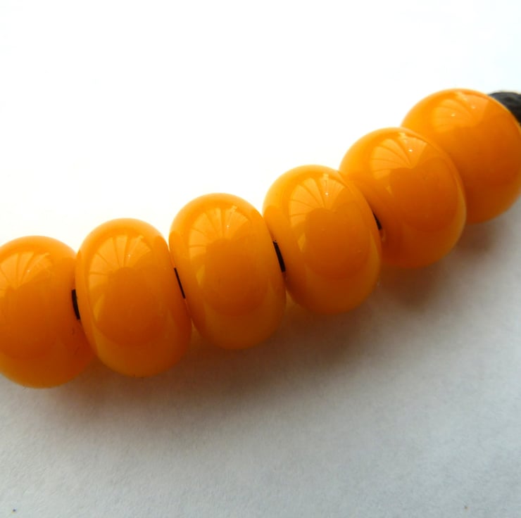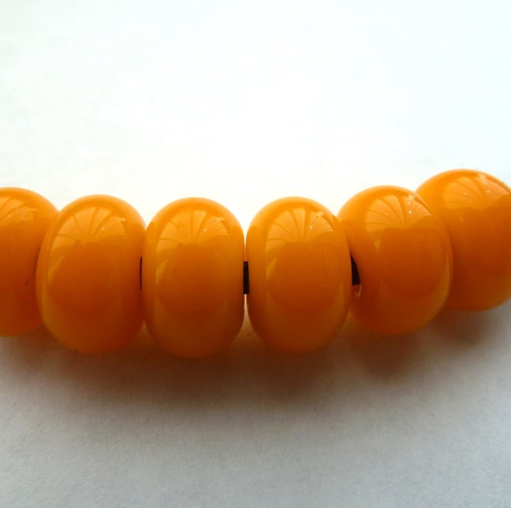 A set of 6 handmade lampwork glass spacer beads made with orange/yellow glass.