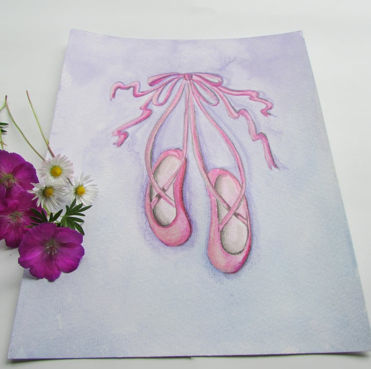 The lovely lilac background compliments the pretty pink ballet shoes.