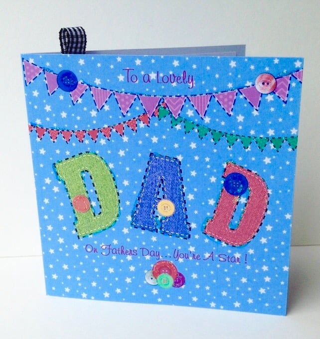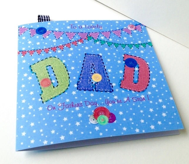 The Applique work is the main design as it spells out 'Dad', with smaller text for the remainder of the greeting.
