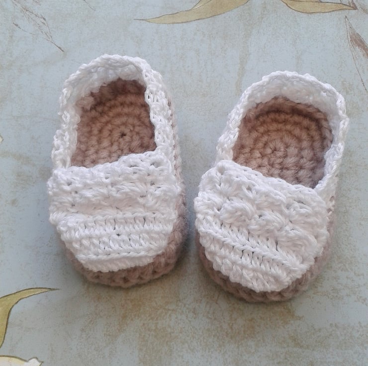 A gorgeous pair of newborn white espadrilles, with an oatmeal sole. The top of the espadrilles is created using pretty vintage style stitch work. Can also be made in 3-6, 6-9 and 9-12 month, please view my other listings!