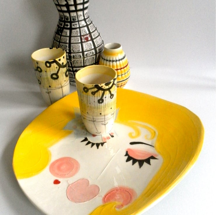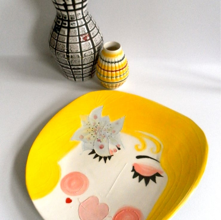 A unique foodsafe hand made/decorated plate for sandwiches, cakes or wall decoration/ornamental use
