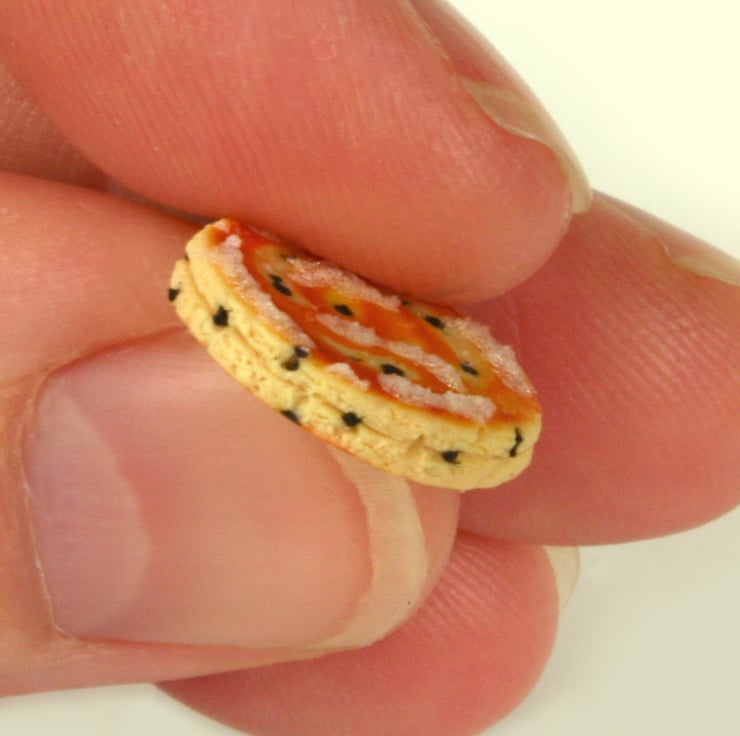 These miniature welsh cake's are handmade from Polymer Clay, dusted with fake sugar and finished with varnish for a realistic look. They measure about 1cm square, the ear wires are hypo allergenic surgical steel, and they come in a smart black cardboard jewellery gift box.