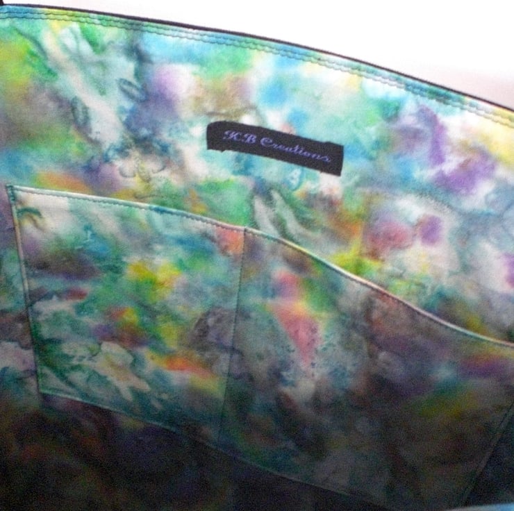 The inside is lined with a lovely cotton batik fabric with 2 slip pockets.