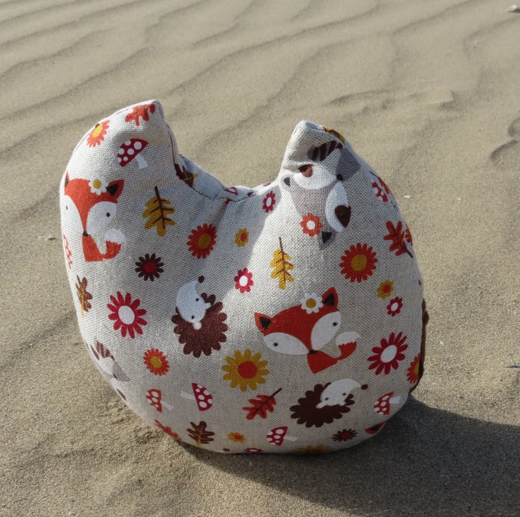 The background fabric is a medium weight cotton with a whimsical woodland design.