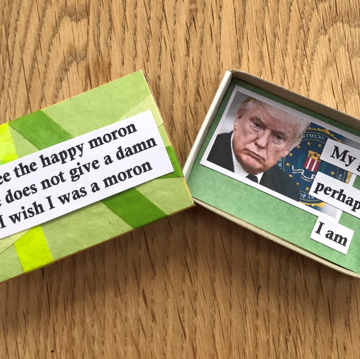 This humorous little matchbox message is contains a big laugh in a small package, (and is the perfect gift for any American who despairs of their president!)