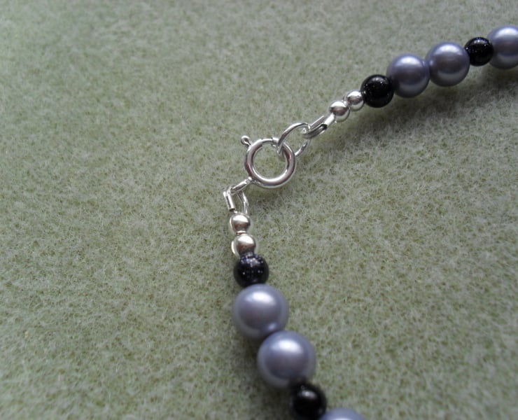 Necklace has a 925 sterling silver bolt ring clasp and sterling silver beads either side of the clasp.