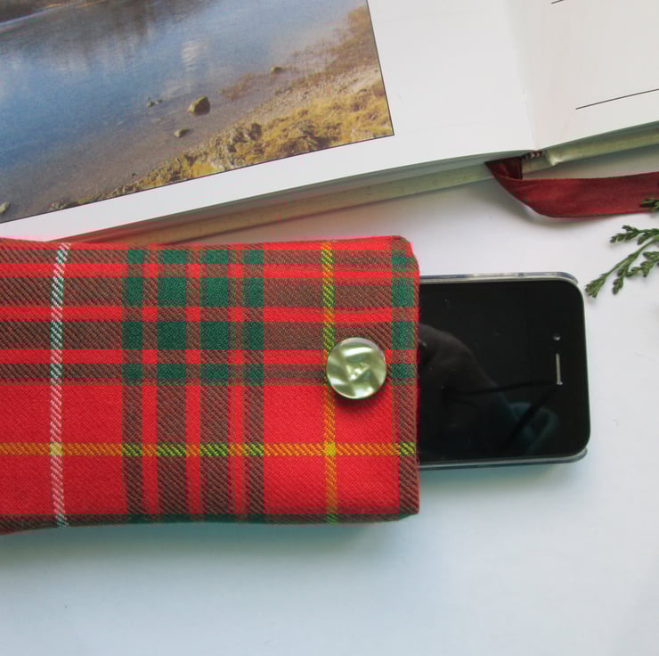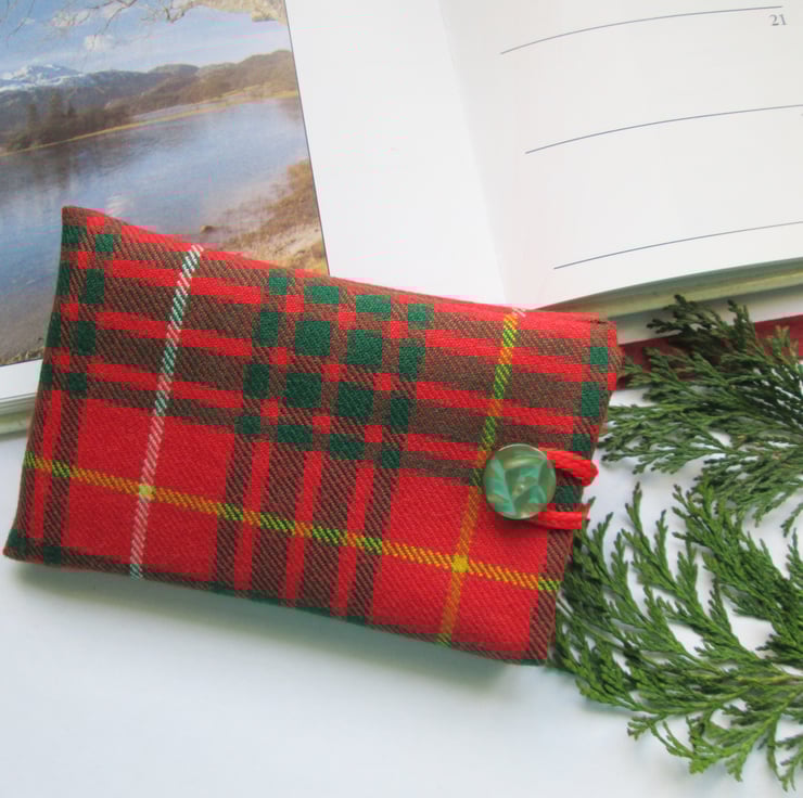 Lovely red and green tartan pure new wool I phone/camera case with lining and button fastener