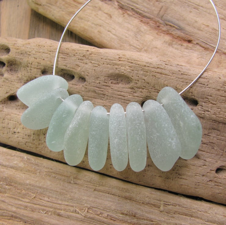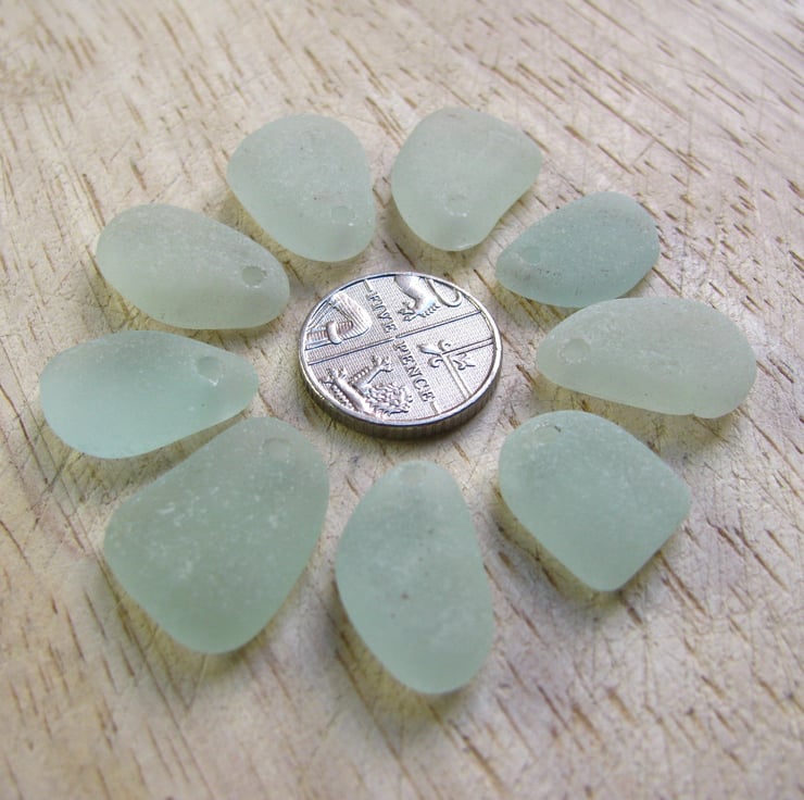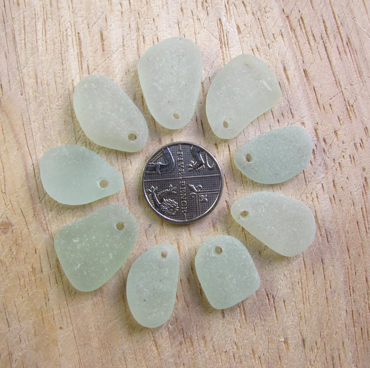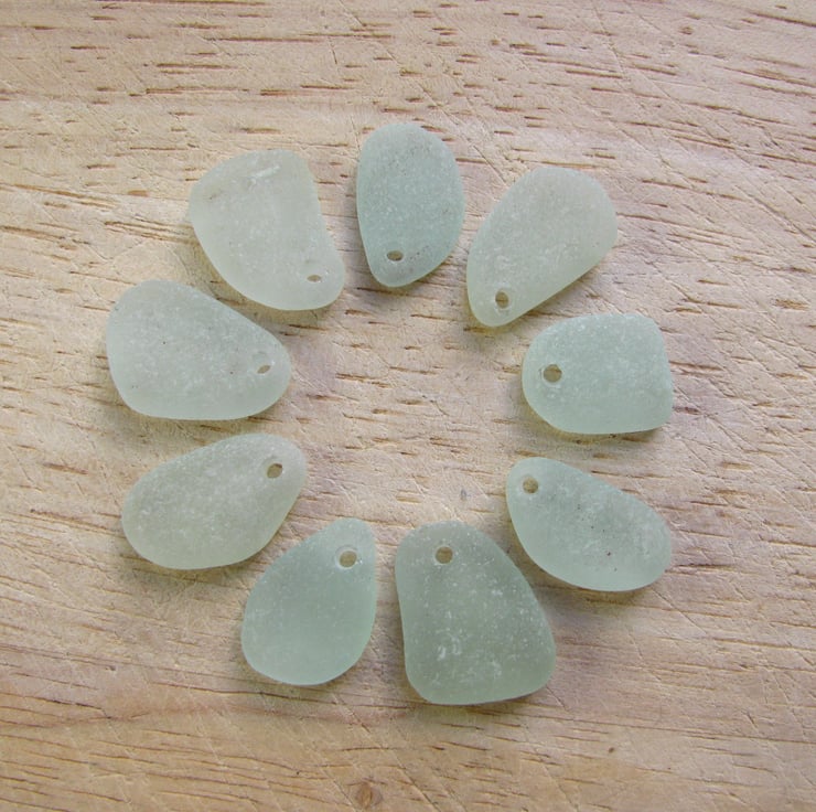 9 Natural sea glass beads, top drilled, chunkies , supplies (51)