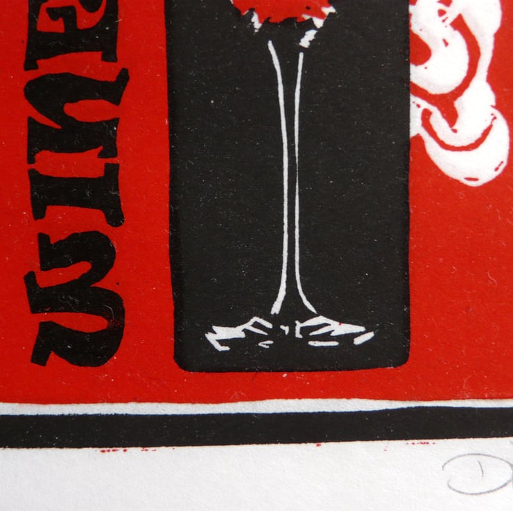 This is an original, hand carved and hand-pulled print. Two blocks, one for each colour are carved and inked separately. This completely manual process means that there will be slight variations between prints, making each one unique; however the photos shown here are of the exact print you are buying.