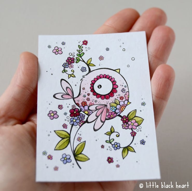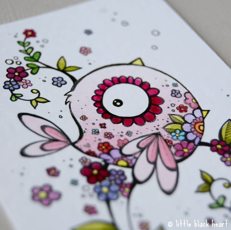 original artwork in artists pens and watercolour paints, on textured white 300gsm cardstock. drawn with a tiny 0.05 nibbed pen, and carefully painted with just the very tip of a tiny paintbrush.