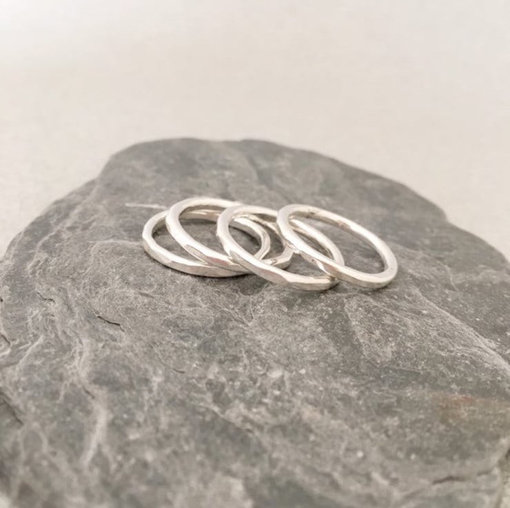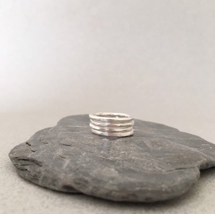 This listing is for ONE solid silver band. The bands are made of 2mm round silver wire and have been lightly hammered. Stacking rings are very versatile and practical. You can wear several for a wide band look or just one for simplicity. These rings are all handmade in my studio.