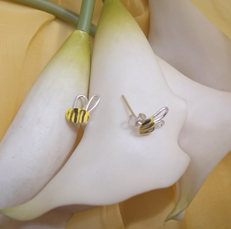 Hand made sterling silver stud earrings, efcolor enamelled with silver scroll backs. Comes in a gift box, matching items available.