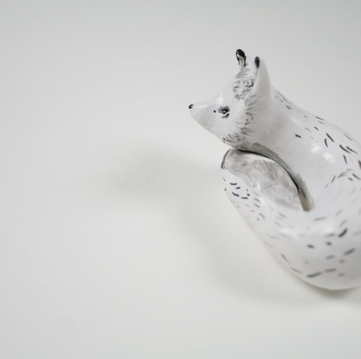 Small Arctic fox sculpture. Created by hand from polymer clay, hand painted using acrylics and sealed for protection.