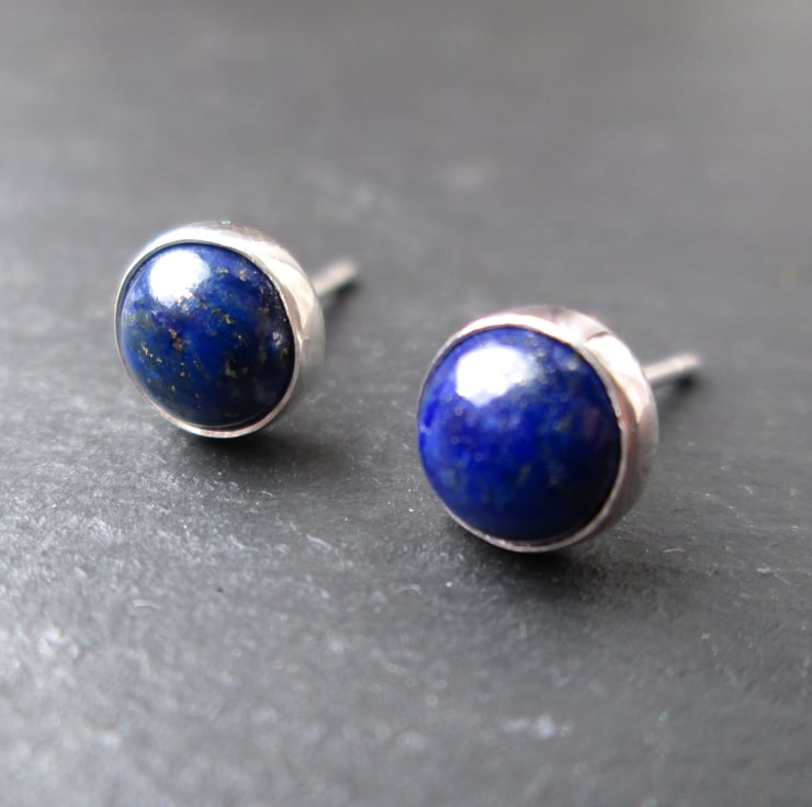 Silver studs set with lapis lazuli gemstone (6mm). Perfect for everyday wear, these simple studs have a lovely rustic charm to them.