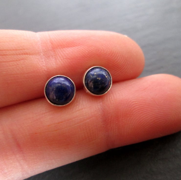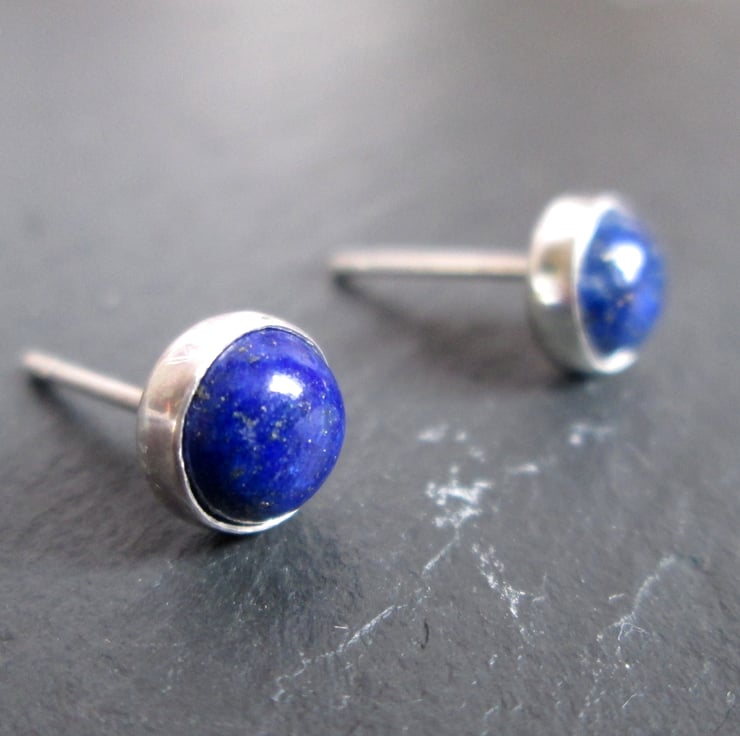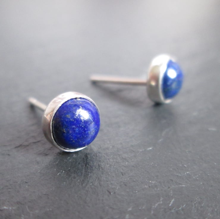 Silver studs set with lapis lazuli gemstone (6mm). Perfect for everyday wear, these simple studs have a lovely rustic charm to them.